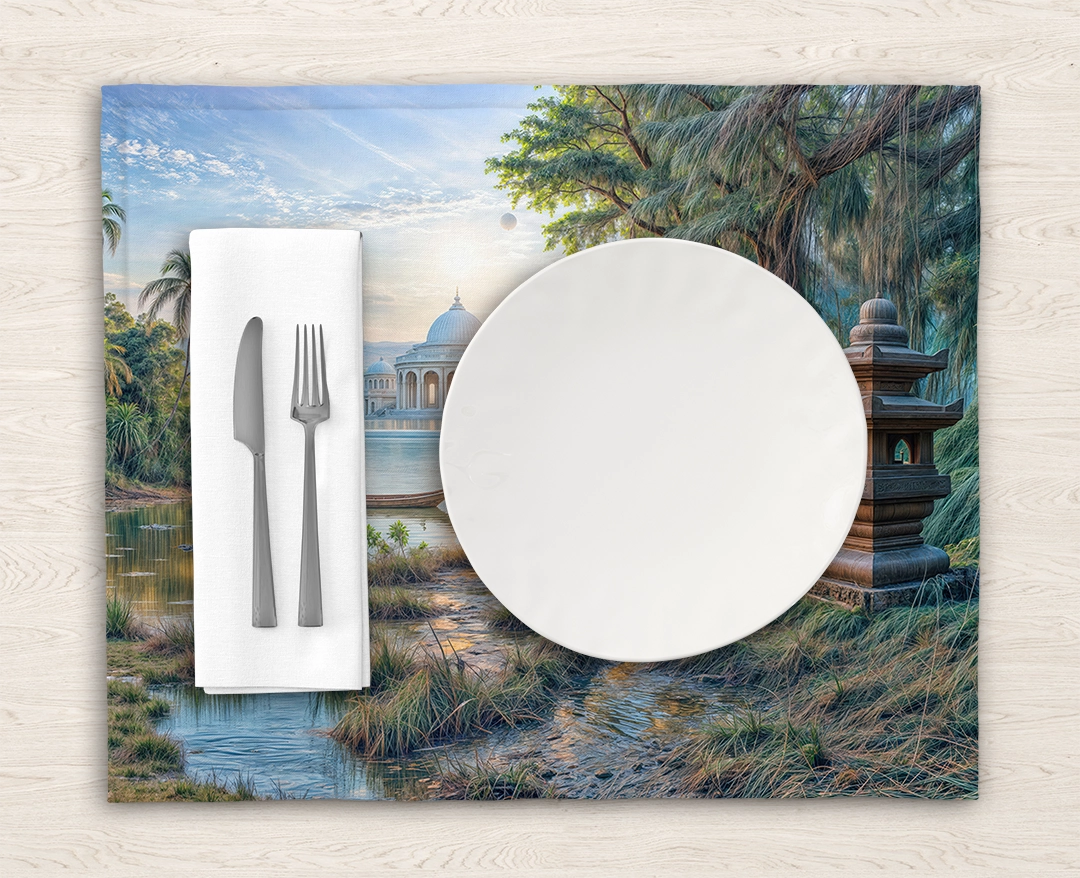 Bu tasarım, Doğu’nun mistik ve huzurlu atmosferini fırça darbeleriyle tuvale yansıtıyor. Her renk, güneşin sakin sular üzerindeki ışıltısını, palmiye ağaçlarının egzotik gölgesini ve antik tapınağın zamana meydan okuyan duruşunu anlatıyor. İzleyicide derin bir dinginlik, ruhsal bir yolculuk ve doğanın eşsiz güzelliğine karşı bir hayranlık uyandırıyor. Bu eser, evinizde sakin, egzotik ve ilham verici bir atmosfer yaratacak.