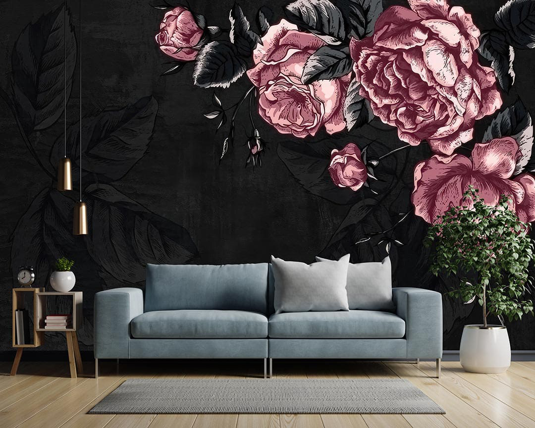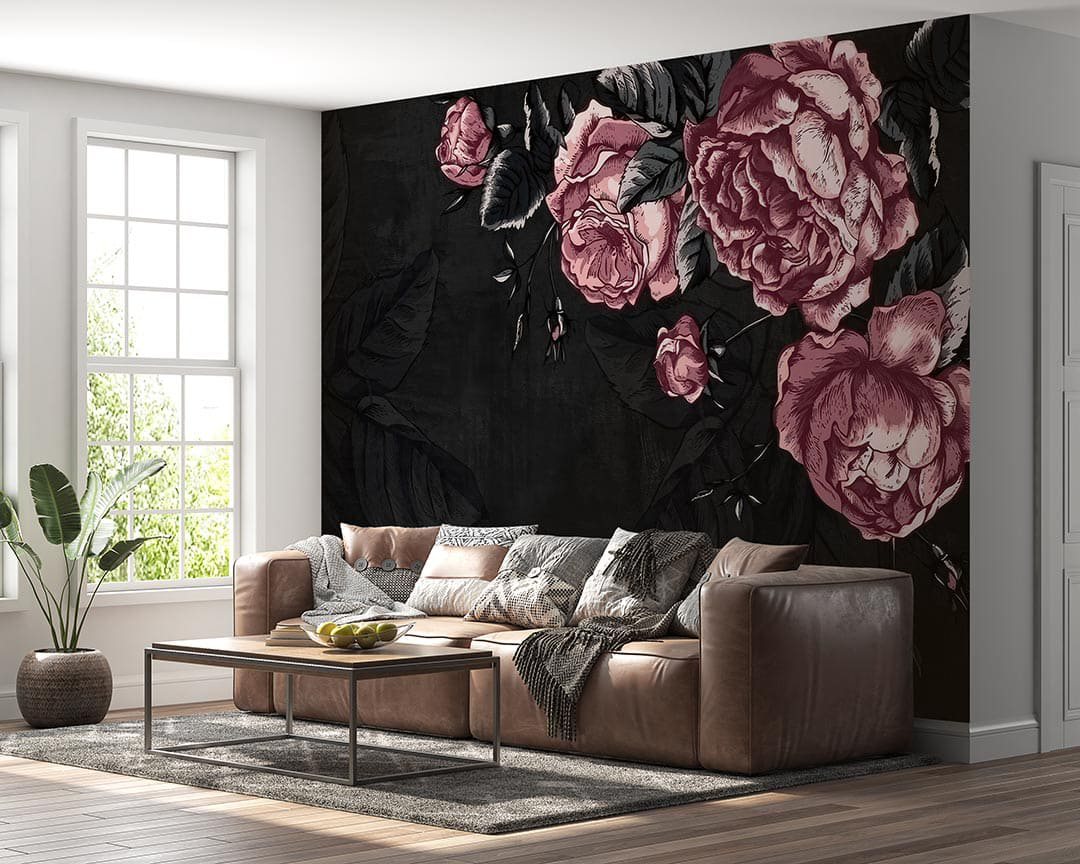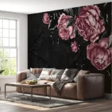 Bu çarpıcı tasarım, koyu renklerin derinliği ve gizemi ile çiçeklerin dramatik zarafetini bir araya getiriyor. Her bir çiçek, karanlık bir arka plan üzerinde belirginleşerek izleyiciye hem çekici hem de gizemli bir hava sunuyor. Bu sanat eseri, mekanlarına dramatik bir dokunuş katmak isteyenler için mükemmel bir seçimdir.