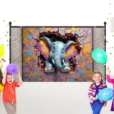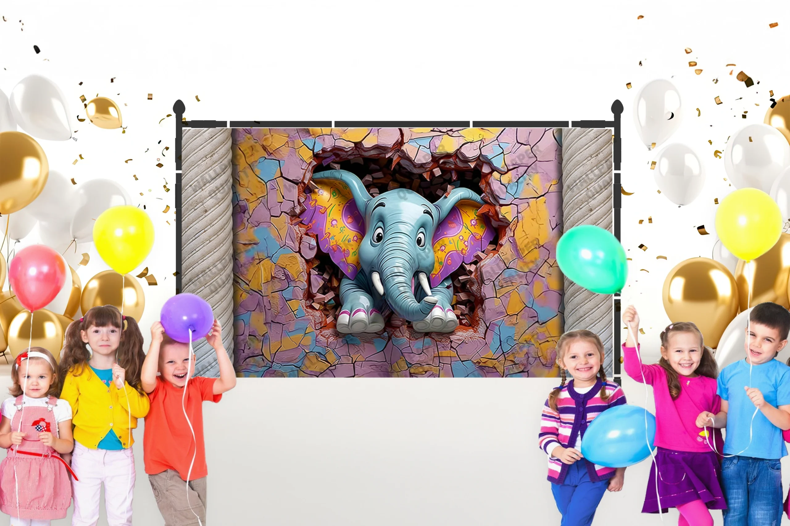 Be the first to review “Duvarı Aşan Renkli Filin Neşeli Dünyası Fon Kumaş”
