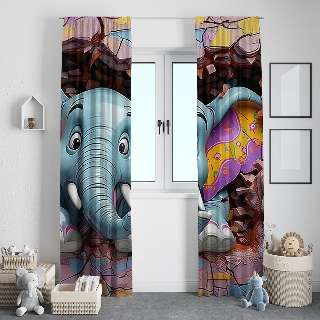 Bu büyüleyici tasarım, duvarı aşarak izleyicilere neşeyle bakan renkli bir fili betimliyor. Filin canlı renkleri ve sevimli ifadesi, izleyicilere keyifli ve eğlenceli bir an sunuyor. Fırça darbeleri, filin dokusunu ve duvarın hareketli yapısını vurgularken, renkler ortama enerji ve canlılık katıyor. Bu eser, hayal gücünün sınırlarını zorlayan neşeli bir sahne sunarak izleyicilere mutluluk dolu bir deneyim yaşatıyor.