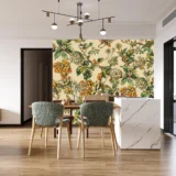 Bu tasarım, doğanın canlılığını ve enerjisini yansıtan çeşitli çiçeklerin bir araya geldiği coşkulu bir bahçeyi sunuyor. Her bir çiçek, parlak renkleri ve özgün formuyla dikkat çekerken, bir araya gelerek mekanlara neşe ve canlılık katıyor. Bu eser, izleyicilere doğanın tazeliğini ve coşkusunu hissettirerek pozitif bir atmosfer yaratıyor.