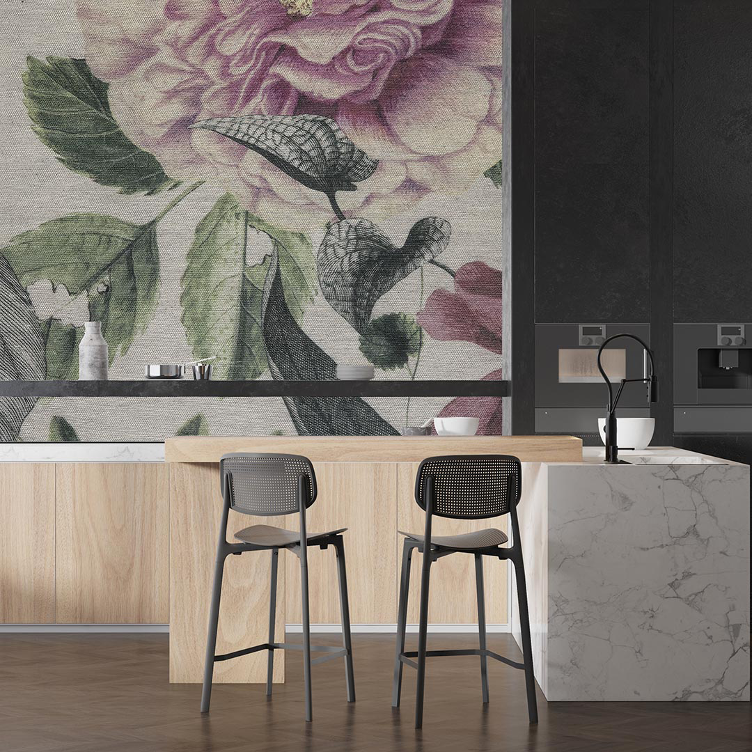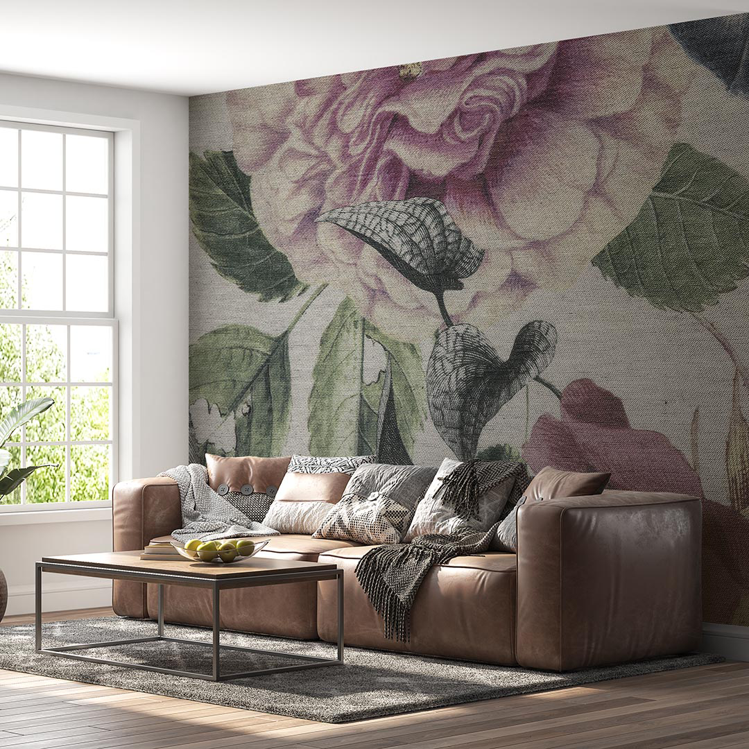 Bu resimde, solgun güllerin zamansız zarafeti ve hüznü bir araya geliyor. Soluk pembe ve mor tonlarının hakim olduğu bu tasarımda, güllerin yapraklarındaki detaylar ve solgun renkler nostaljik bir hava yaratıyor. Bu eser, mekanlara geçmişin izlerini taşırken, hüzünlü bir güzellik ve zarafet katıyor.