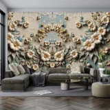 Bu sanat eseri, geçmişin izlerini taşıyan eskitilmiş bir dokunun üzerinde yükselen çiçeklerin zamansız güzelliğini gözler önüne seriyor. Kabartmalı detaylar, çiçeklere boyut ve derinlik kazandırarak onlara adeta bir heykelsi zarafet katıyor. Bu eser, mekanlara hem nostaljik bir hava hem de sofistike bir şıklık getiriyor.