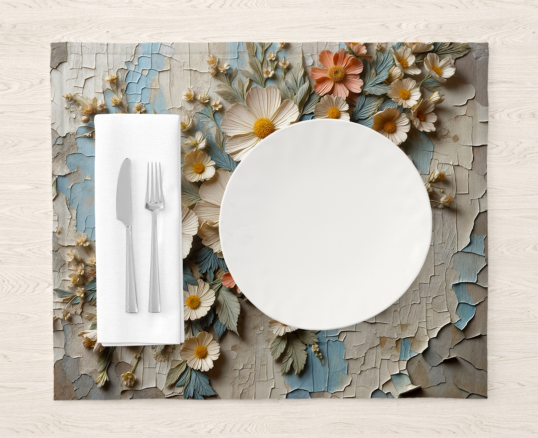 Bu sanat eseri, eskitilmiş bir duvarın üzerinde hayat bulan bir çiçek bahçesini tasvir ediyor. Kabartmalı çiçekler, duvarın çatlakları arasında gizlenmiş bir şiiri fısıldıyor. Her bir yaprak, her bir taç yaprağı, zamanın izlerini taşıyan bu duvara dokunuyor ve ona yeni bir anlam katıyor. Bu eser, mekanlara nostaljik bir zarafet ve zamansız bir güzellik getiriyor.