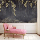 Bu tasarım, doğanın büyüleyici güzelliğini lüks ve zarif bir yorumla sunuyor. Altın rengi yapraklar ve dallar, baharın canlılığını ve zenginliğini simgelerken, koyu zemin üzerindeki ışık oyunları tasarıma derinlik ve gizem katıyor. İzleyiciye hayranlık, merak ve doğanın lüks yüzünü keşfetme hissi veriyor. Bu eser, doğanın zarafetini ve lüksü bir araya getirerek mekanlara eşsiz bir atmosfer katıyor.