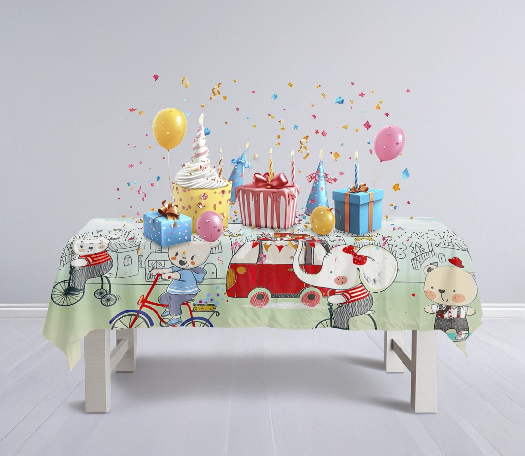 - Masa Örtüsü: Çocuk partileri, oyun masaları veya temalı etkinliklerde kullanılarak ortama eğlenceli ve dikkat çekici bir hava getirir.
