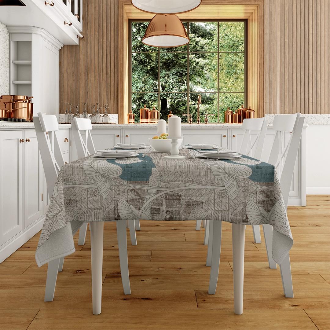 • Runner: Uzun bir masanın ortasına yerleştirildiğinde, gazete dokulu yaprakların desenlerini sergiler. Yemeklerinize hem görsel bir şölen hem de modern bir zarafet katar.