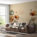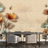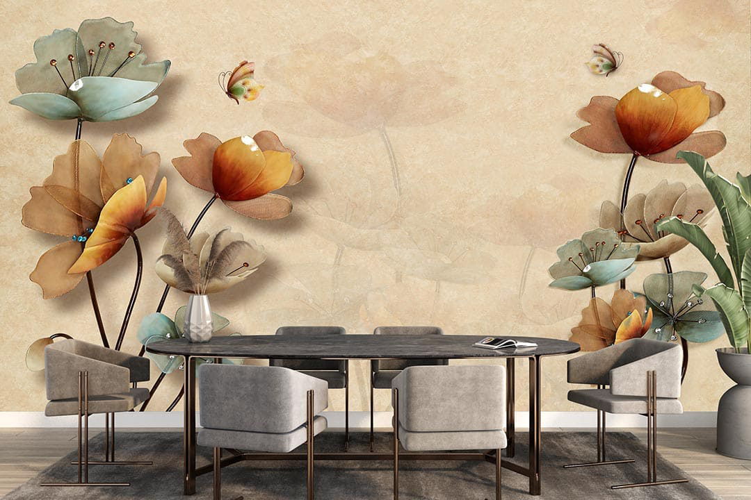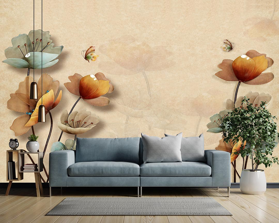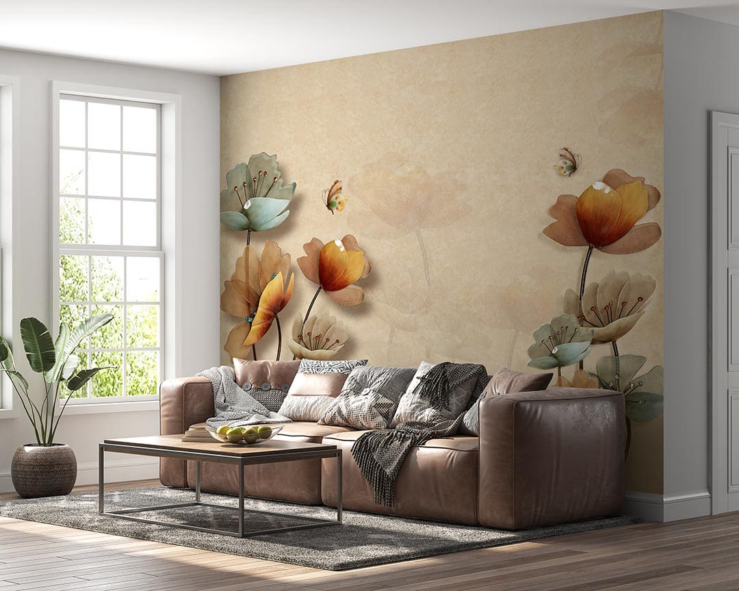 Bu resimde, solmuş çiçeklerin gizemli güzelliği ve hüzünlü atmosferi yansıtılıyor. Toprak tonlarının hakim olduğu bu tasarımda, solan çiçeklerin hala taşıdığı zarafet ve hüzün duygusu ön plana çıkıyor. Küçük kelebekler, bu hüzünlü sahneye hareket ve umut katıyor. Bu eser, mekanlara nostaljik bir hava katarken, yaşamın geçiciliğini ve güzelliğini de düşündürüyor.