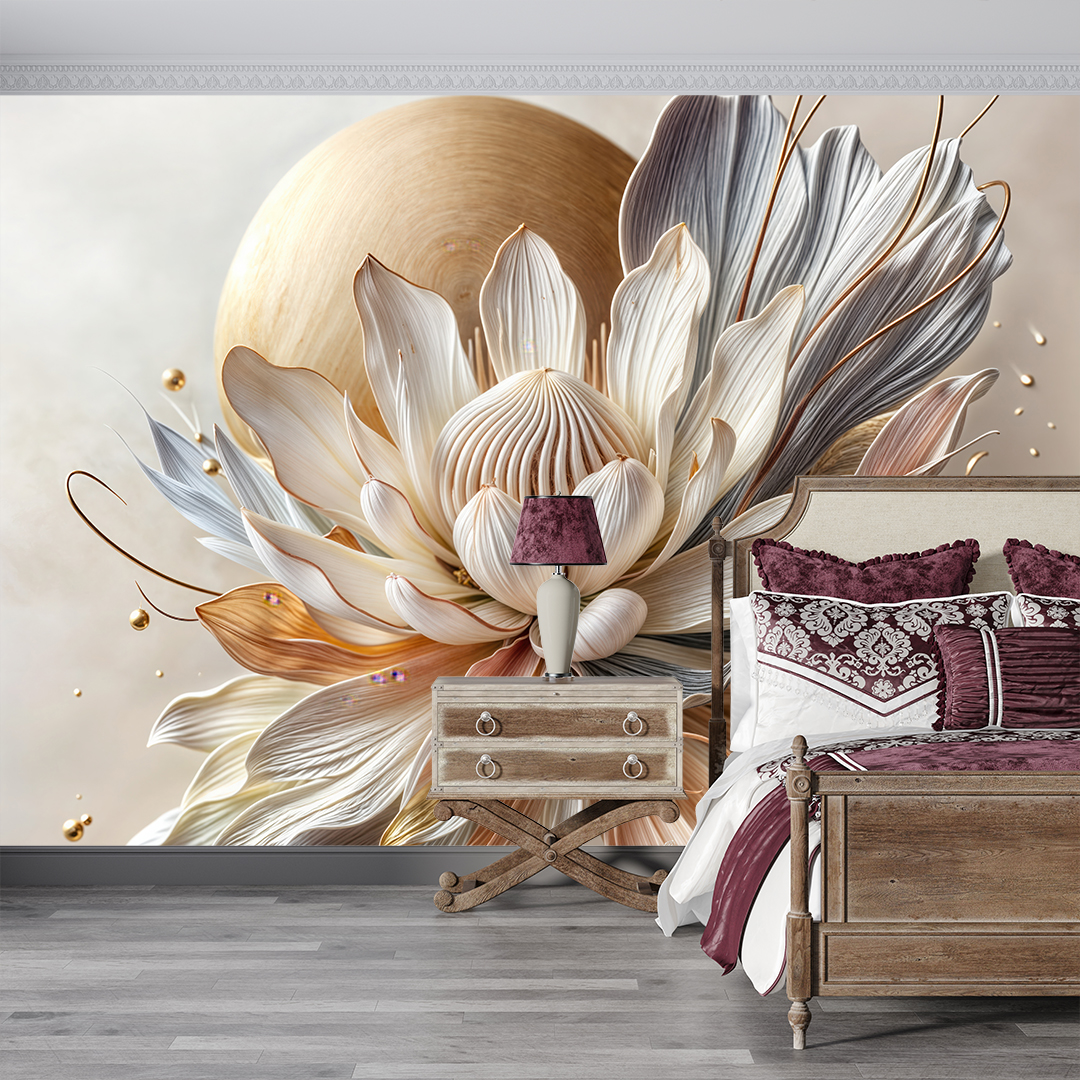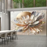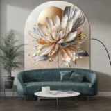 Bu tasarım, gizemli bir bahçenin derinliklerinden gelen eşsiz bir çiçeği gözler önüne seriyor. Çiçeğin karmaşık yaprakları ve zarif kıvrımları, doğanın mucizesini ve kusursuzluğunu yansıtıyor. Altın dokunuşlar, tasarıma lüks ve gizemli bir hava katarken, renklerin zenginliği ise hayranlık uyandırıyor. Bu eser, mekanlara sofistike bir güzellik ve büyüleyici bir atmosfer katıyor.