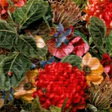 Bu tasarım, koyu tonların gizemli ve sofistike güzelliğini yansıtan bir çiçek aranjmanını sunuyor. Bordo, lacivert ve koyu yeşil tonlarının hakim olduğu çiçekler, izleyiciye derinlik ve zenginlik dolu bir atmosfer sunuyor. Her bir çiçek, kadifemsi dokusu ve yoğun renkleriyle dikkat çekerken, kompozisyonun bütünü asalet ve zarafet hissi uyandırıyor. Fırça darbeleri ve renklerin kullanımı, bu etkileyici ve büyüleyici etkiyi güçlendiriyor.