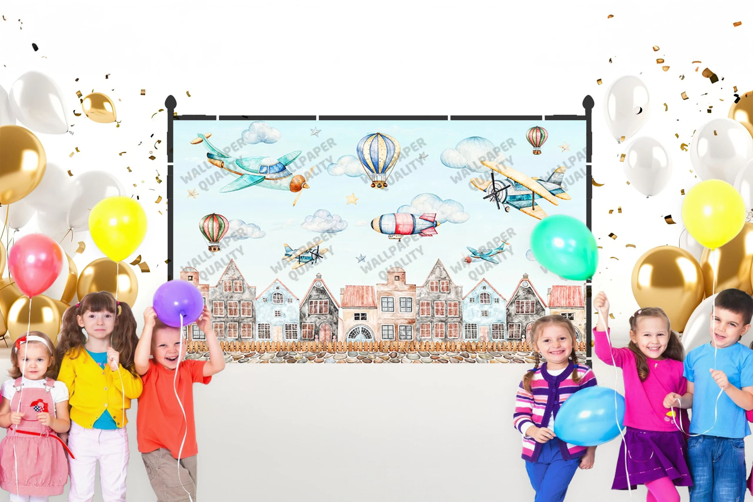 Bu tasarım, bir şehrin üzerinde süzülen uçan araçların masalsı görüntüsünü sunuyor. Balonlar ve uçaklar, şehrin tarihi dokusunu ve canlı atmosferini farklı bir perspektiften gözler önüne seriyor. Pastel renkler ve detaylı çizimler, izleyiciyi bu fantastik yolculuğa davet ediyor. Bu görsel, hayal gücünü harekete geçirerek şehri ve yolculuğu seven herkesi büyülü bir serüvene çıkarıyor.