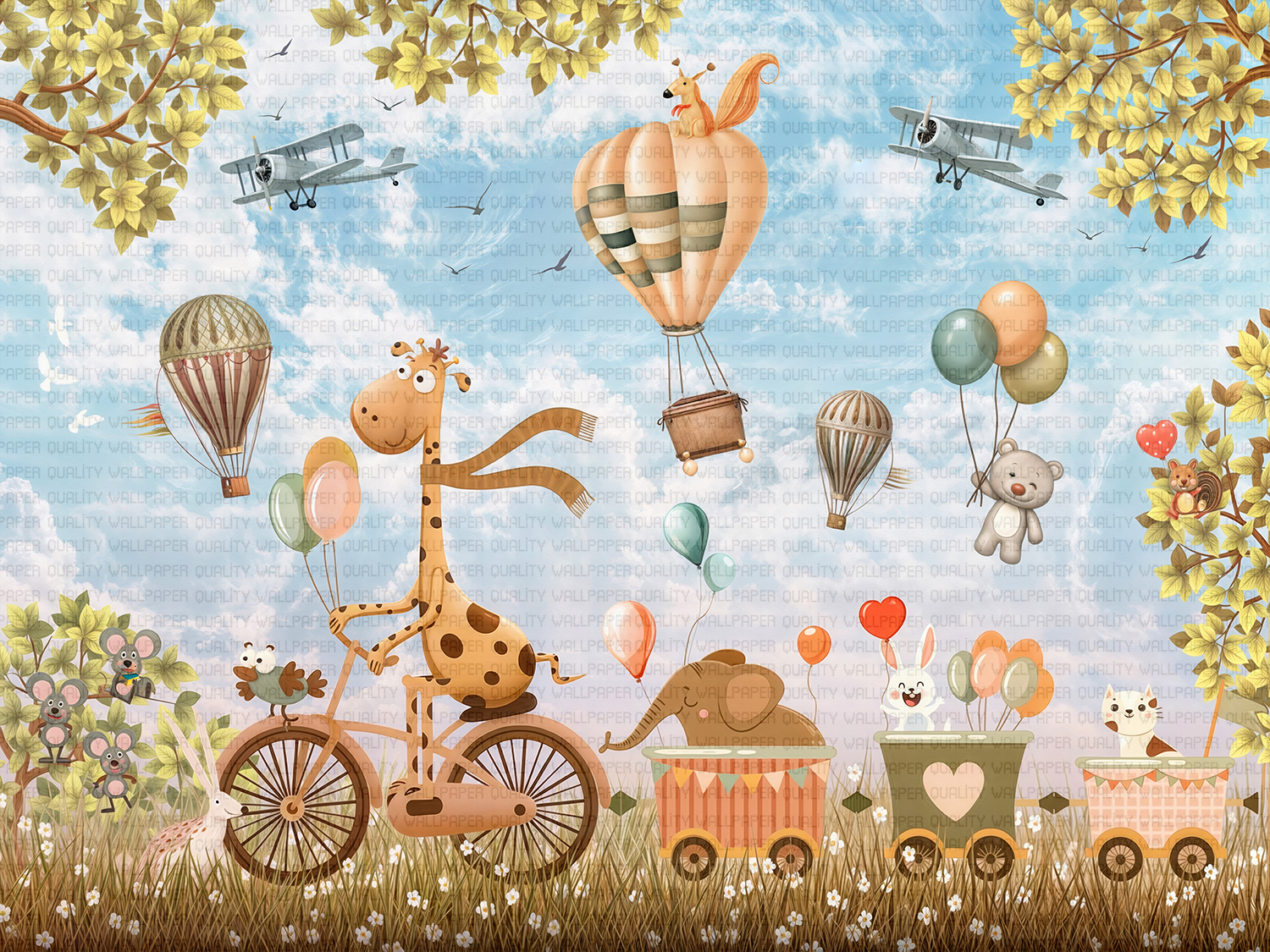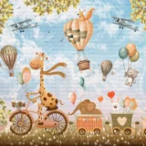 Bu tasarım, hayallerin ve neşenin gökyüzünde buluştuğu büyülü bir anı yakalar. Fırça darbeleri, yumuşak geçişlerle gökyüzünün sonsuzluğunu ve dost canlısı hayvanların sıcaklığını yansıtır. Her renk, bir maceranın başlangıcını, bir gülümsemeyi veya keşfedilmeyi bekleyen bir sırrı fısıldar. İzleyicide huzur, merak ve sonsuz bir oyun isteği uyandırarak, odanın atmosferini neşe ve hayallerle doldurur.