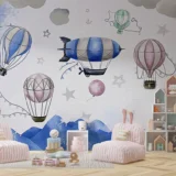 Bu büyüleyici görsel, gökyüzünde süzülen rengarenk balonlar ve nostaljik bir zeplin ile hayallerin sınırlarını zorlayan bir yolculuğa çıkarıyor. Pastel tonların hakim olduğu bu eserde, bulutların hafifliği ve yıldızların parıltısı, izleyiciye huzurlu ve masalsı bir atmosfer sunuyor. Her bir fırça darbesi, gökyüzünün sonsuzluğunu ve içimizdeki keşfetme arzusunu simgeliyor. Bu tasarım, izleyeni rüyaların peşinden gitmeye ve hayal gücünün gücüne inanmaya davet ediyor.