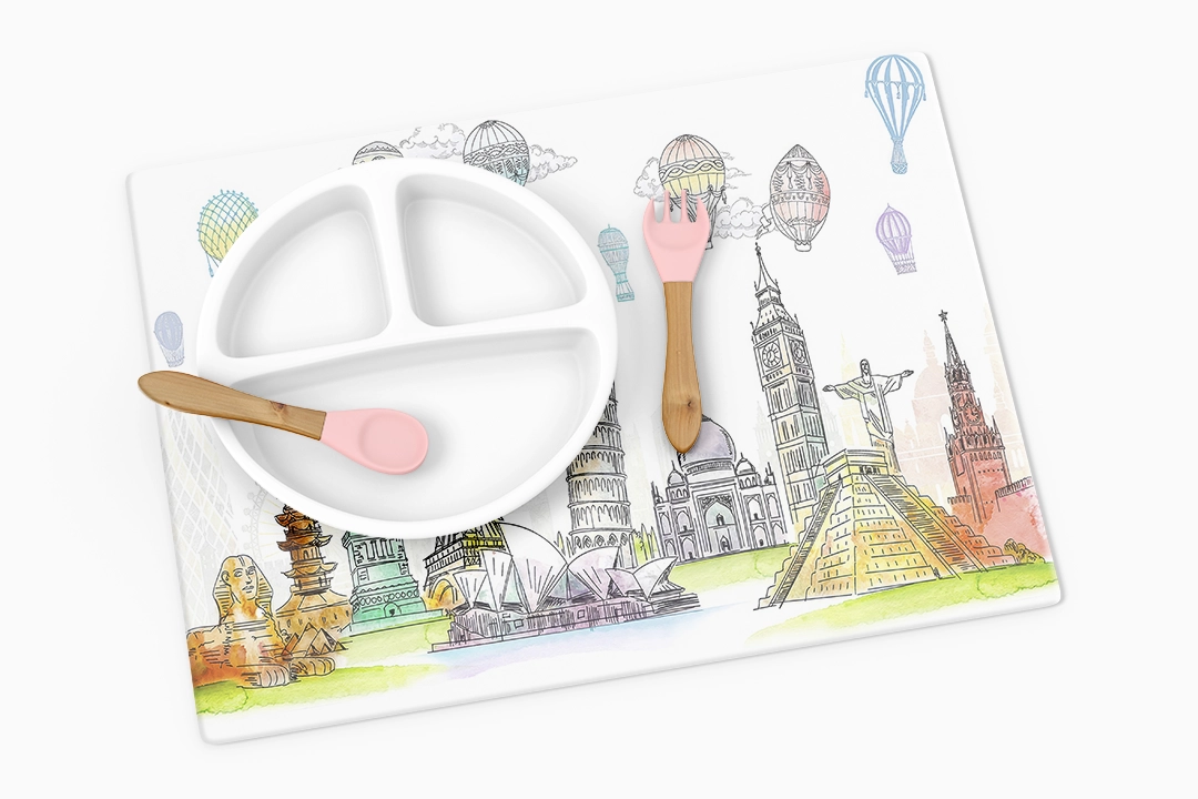 Bu görsel, dünyanın dört bir yanından zamansız anıtları ve yapıları bir araya getiriyor. Fırça darbeleriyle hayat bulan bu silüetler, gökyüzünde süzülen rengarenk balonlarla buluşuyor. Her bir renk, farklı bir kültürü ve tarihi dönemi temsil ederken, balonların hafifliği izleyiciye bir yolculuk ve keşif hissi veriyor. Bu eser, farklı coğrafyaları ve zamanları bir araya getirerek, insanlığın ortak mirasına bir övgü niteliği taşıyor. İzleyiciyi hem geçmişe doğru bir yolculuğa çıkarıyor, hem de geleceğe dair umut ve merak uyandırıyor.