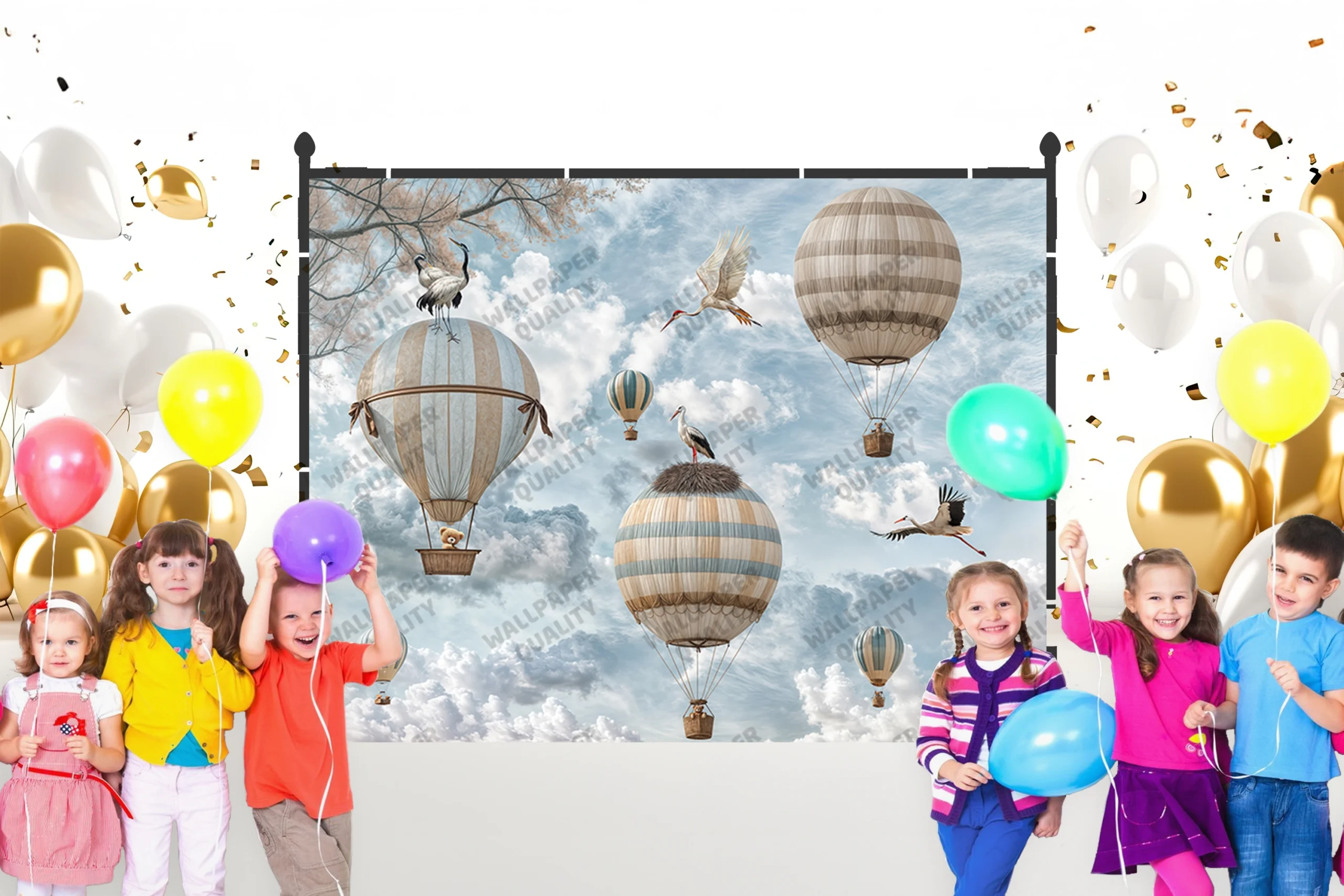 Be the first to review “Gökyüzünde Süzülen Hayaller Bulutların Arasında Dans Eden Balonların ve Kuşların Özgürlük Senfonisi Fon Kumaş”