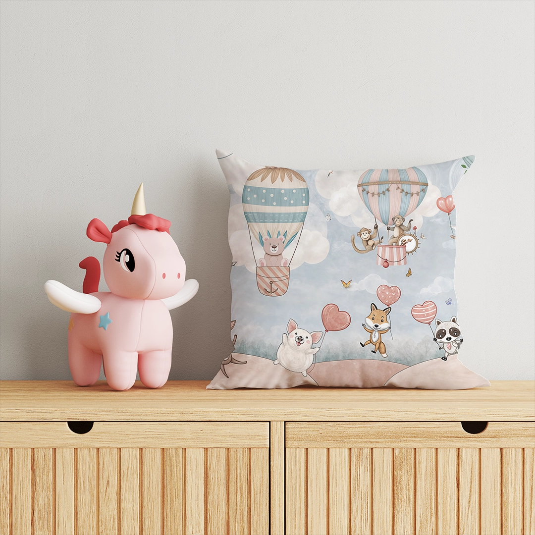 Bu tasarım, çocukluk hayallerinin ve gökyüzünün sınırsız özgürlüğünün bir kutlamasıdır. Her bir fırça darbesi, bulutların yumuşak dokusunu ve sevimli hayvan dostlarımızın neşeli ruhunu yansıtır. Pastel renk paleti, balonların zarif yükselişinden, minik kuşların cıvıltısına kadar, her bir detayın kendi masalsı hikayesini fısıldadığını gösterir. Bu görsel, izleyicide hafiflik, dinginlik, ilham ve hayal gücüne dair bir uyanış hissi uyandırır. Her bakışta yeni bir maceraya davet eder, ruhu dinlendirir ve içsel bir huzur sunar.