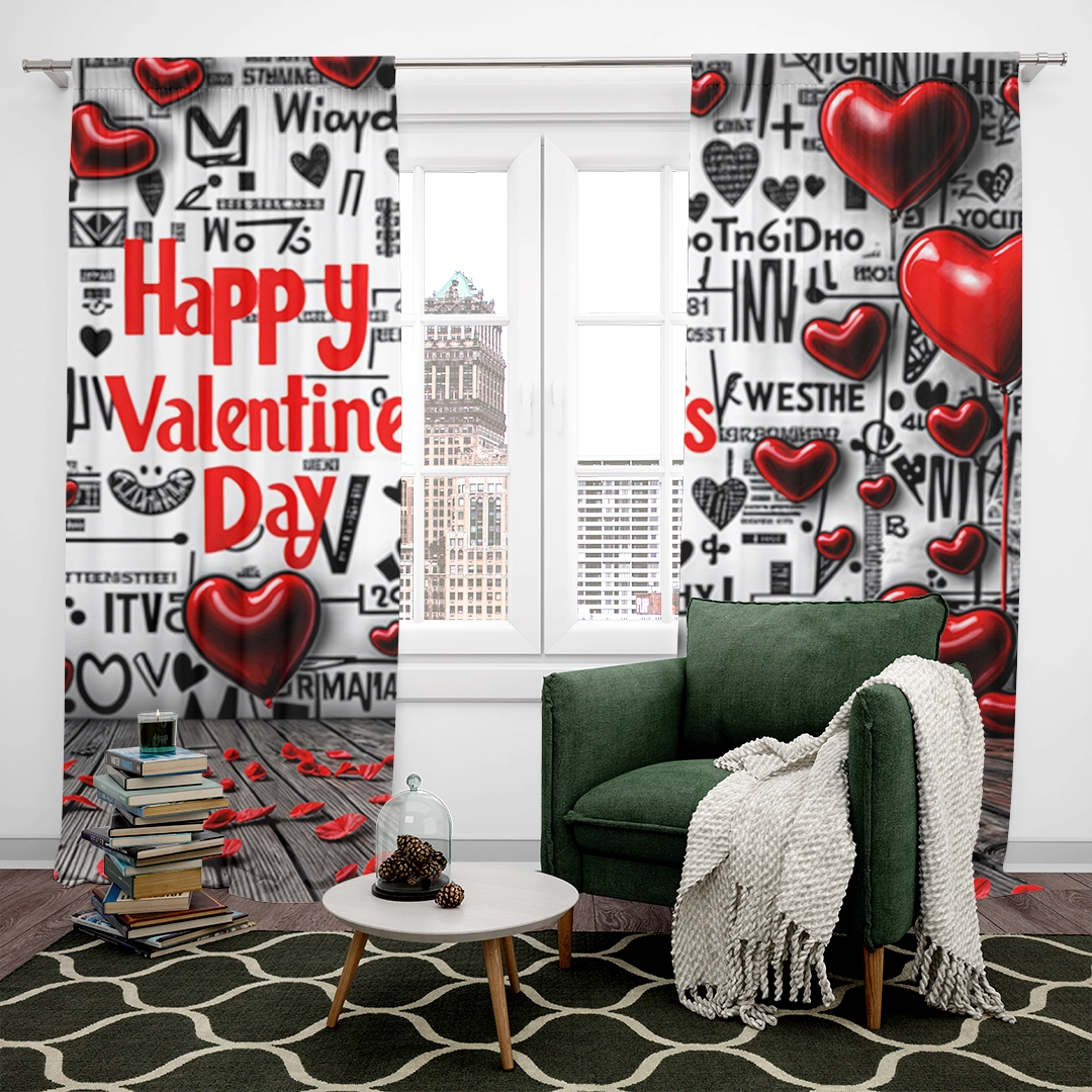 Be the first to review “Grafiti Duvarında Kırmızı Kalplerin Dansıyla Romantik Mesaj Fon Perde”