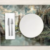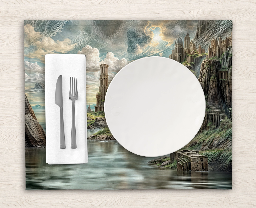 Bu tasarım, J.R.R. Tolkien’in Orta Dünya evreninden ilham alan, Gri Limanlar’ın (Grey Havens) büyüleyici ve melankolik atmosferini fırça darbeleriyle gözler önüne seriyor. Yıkık kuleler ve antik yapılar, geçmişin ihtişamını ve elflerin kadim sırlarını fısıldıyor. Dingin su, kayalık kıyılar ve sisli gökyüzü, manzaraya derinlik ve sonsuzluk katıyor. Her fırça darbesi, taşın yıpranmış dokusunu, suyun hareketini ve gökyüzünün dramatik bulutlarını vurgularken, grinin, kahverenginin, yeşilin ve mavinin zengin tonları, bu sahnenin huzurunu ve gizemini hissettiriyor. İzleyicide bir hayranlık, hüzün ve keşfetme arzusu uyandırırken, aynı zamanda fantastik bir dünyanın kapılarını aralama hissini veriyor. Bu görsel, ruhu dinlendiren, hayal gücünü harekete geçiren ve sizi zamansız bir yolculuğa davet eden bir kapı aralıyor.