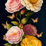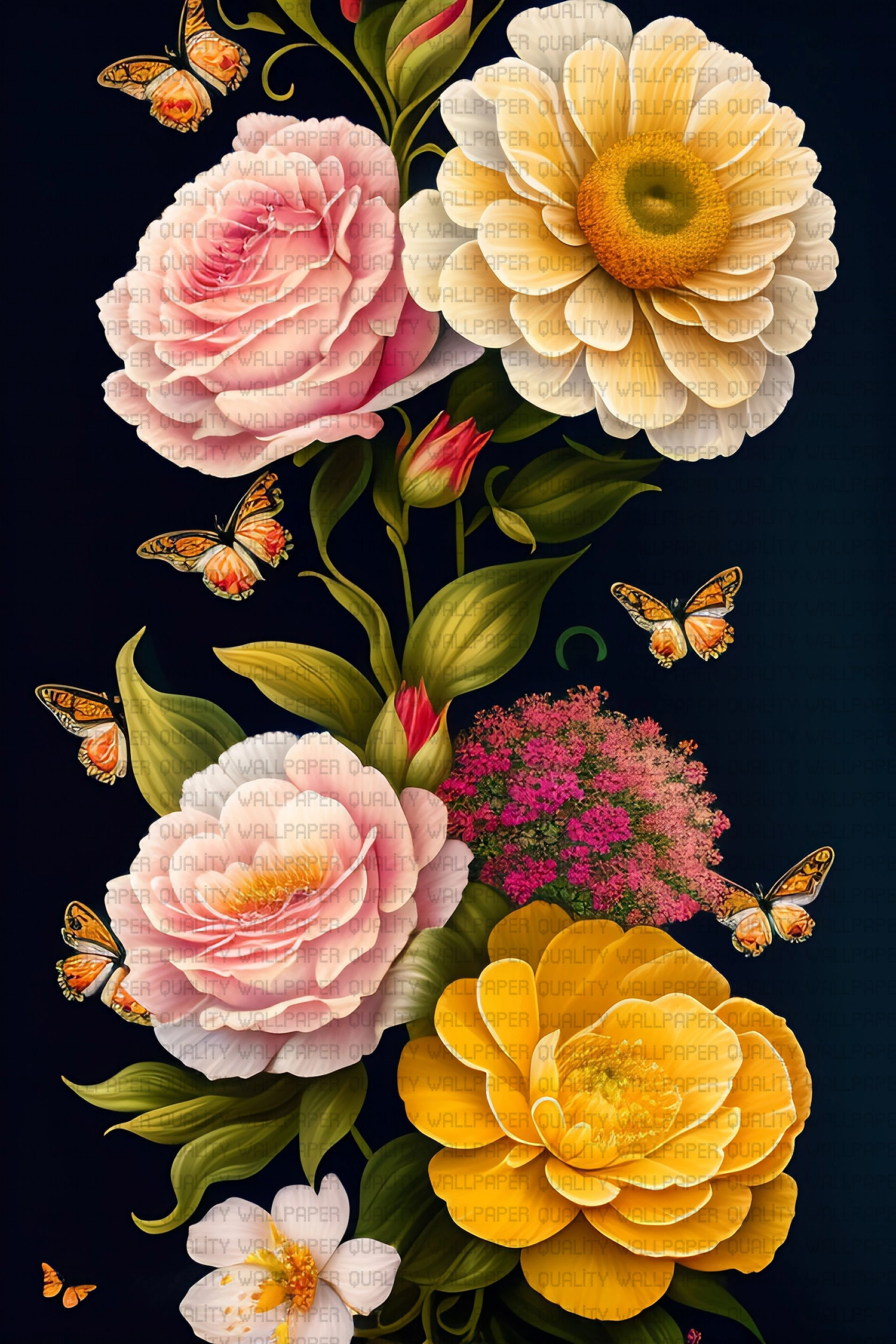 Bu büyüleyici tasarım, güllerin zarafetini ve kelebeklerin özgürlüğünü bir araya getiriyor. Canlı renkler ve zarif detaylar, izleyiciye baharın tazeliğini ve coşkusunu sunuyor. Güllerin romantik dokunuşu ve kelebeklerin hafifliği, mekanlara huzur ve neşe katıyor.