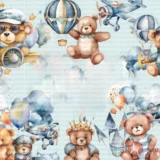 Bu sevimli görselde, rengarenk balonlar ve uçaklarla süslenmiş bir gökyüzünde neşeli ayıcıklar resmediliyor. Her bir ayıcık, farklı bir maceranın peşinde; kimi pilot, kimi yolcu, kimi de sadece bu keyifli yolculuğun tadını çıkarıyor. Yumuşak renkler ve sevimli detaylar, izleyiciye huzurlu ve eğlenceli bir dünya sunuyor. Bu eser, çocuksu hayallerin, arkadaşlığın ve keşfetme arzusunun bir kutlamasıdır. İzleyicisine sıcak bir gülümseme ve tatlı bir anımsama hissi veriyor.