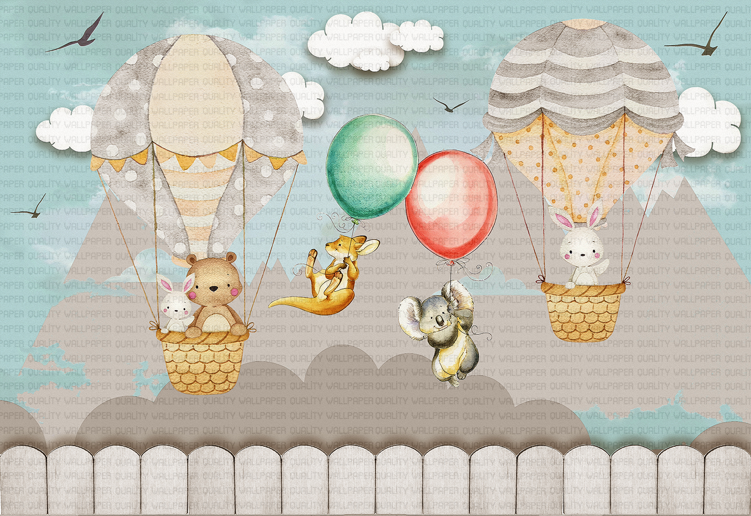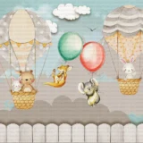 Bu tasarım, sevimli hayvanların bir araya gelerek çıktıkları neşeli bir balon serüvenini anlatıyor. Sıcak hava balonları, hayvan dostlarımızı gökyüzünde taşırken, etraflarını saran renkli balonlar ve yıldızlar, hayal gücünün sınırlarını zorluyor. Her bir detay, dostluğun, neşenin ve birlikte hayal kurmanın önemini vurguluyor. Bu görsel, izleyicisine çocuksu bir merak ve keşfetme duygusu aşılıyor, onları tatlı bir rüyaya davet ediyor.