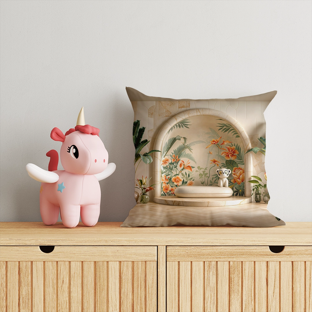 Bu büyüleyici görselde, sevimli bir oyuncak, yemyeşil bir bahçenin ortasında, rengarenk çiçeklerin arasında huzurlu bir şekilde oturuyor. Sıcak renkler ve yumuşak ışık, sahneye sakin ve davetkar bir atmosfer katarken, çiçeklerin canlılığı ve oyuncanın sevimli duruşu izleyicilere huzur ve mutluluk veriyor. Bu tasarım, doğanın dinginliğini ve oyuncakların masumiyetini bir araya getirerek içsel bir yolculuğa çıkarıyor.