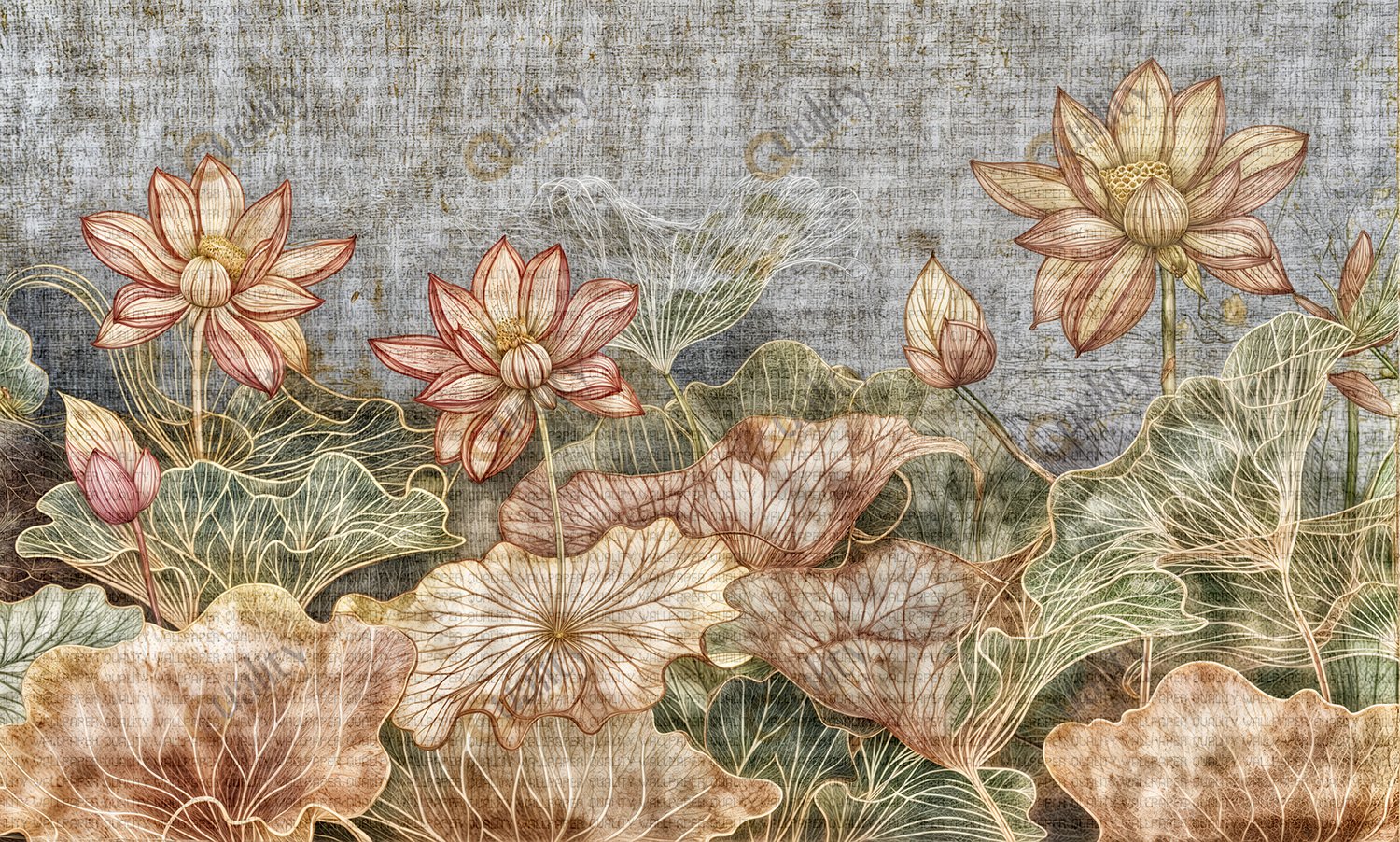 Bu zarif görsel, lotus çiçeklerinin dingin güzelliğini ve huzur veren atmosferini yansıtıyor. Her bir detay, zarafeti ve sükuneti temsil ederken, tasarımın genel kompozisyonu mekana dinginlik ve huzur katıyor. Bu sanat eseri, yaşam alanlarına huzur ve zarafet katmak isteyenler için mükemmel bir seçimdir.