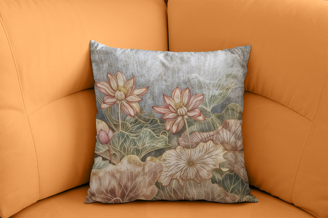 Bu zarif görsel, lotus çiçeklerinin dingin güzelliğini ve huzur veren atmosferini yansıtıyor. Her bir detay, zarafeti ve sükuneti temsil ederken, tasarımın genel kompozisyonu mekana dinginlik ve huzur katıyor. Bu sanat eseri, yaşam alanlarına huzur ve zarafet katmak isteyenler için mükemmel bir seçimdir.