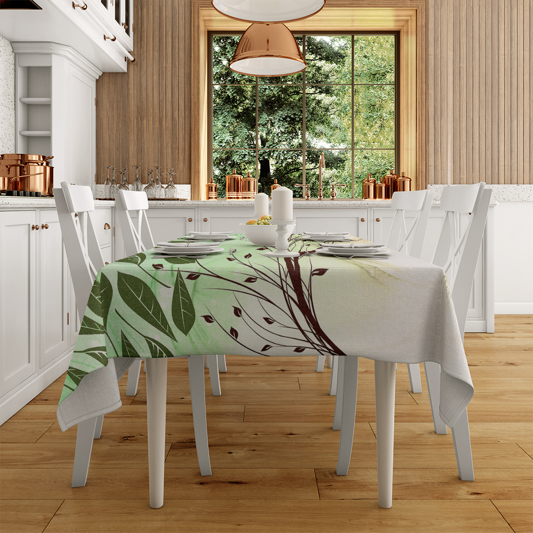 Bu tasarım, doğanın iki farklı unsurunun – zarif yapraklar ve organik dallar – bir araya gelerek oluşturduğu uyumu ve hareketi yakalar. Yaprakların canlı yeşili ve dalların sıcak kahverengisi, dinamik bir kontrast oluştururken, desenin akışı izleyiciye huzur ve canlılık hissi verir. Bu eser, doğanın ritmini ve ahengini mekanlara taşıyarak, ortama enerji ve zarafet katar.