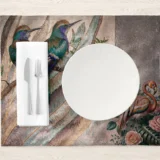 Bu büyüleyici tasarım, iki zarif kuşun tropikal bir bahçedeki ahengini yansıtıyor. Kuşların zarif duruşları, tropikal bitkilerin canlılığı ve doğanın huzurlu melodisi, izleyiciye keyifli ve rahatlatıcı bir deneyim sunuyor. Detaylı çizimler ve zengin renkler, mekanlara sofistike bir dokunuş katıyor.