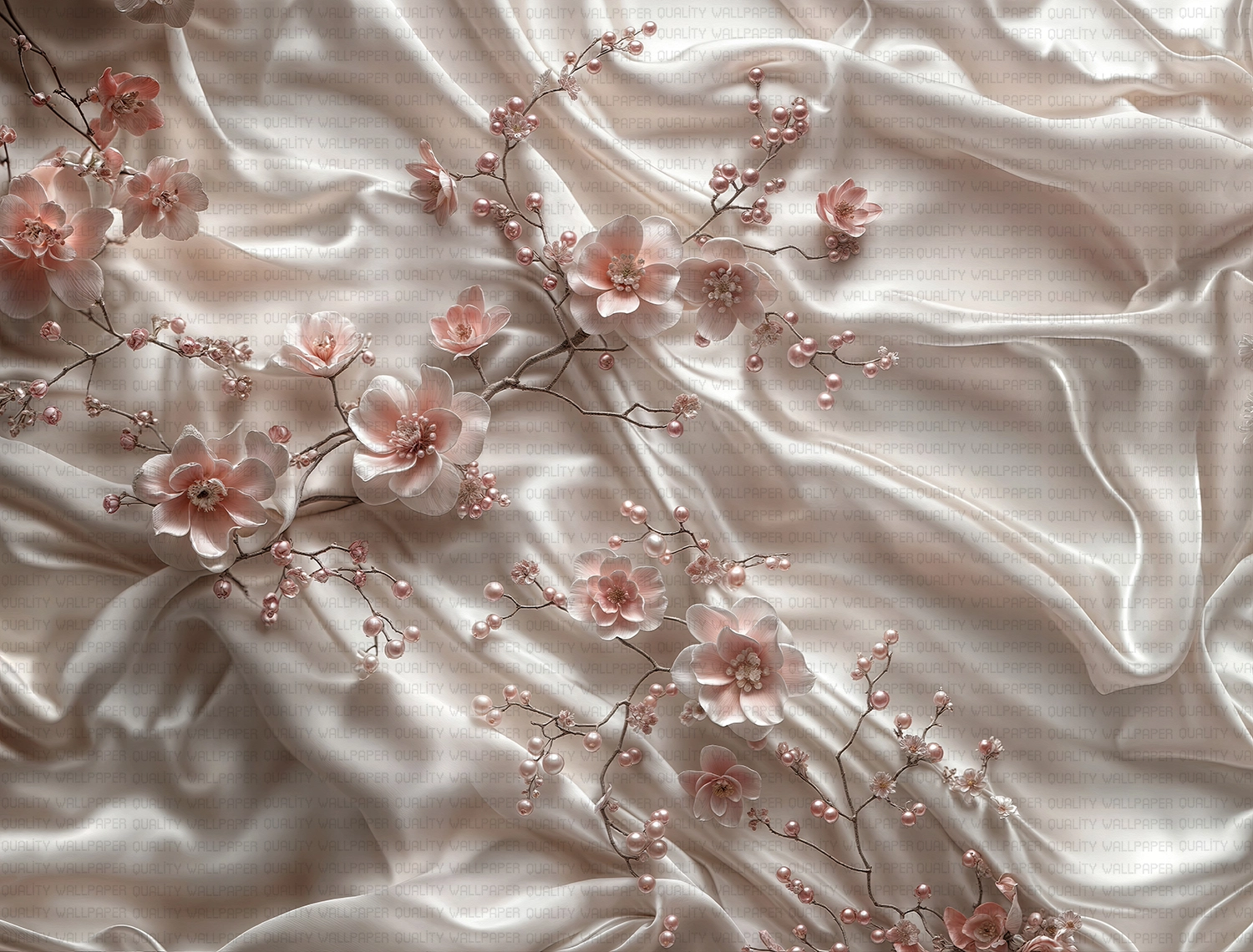 Bu büyüleyici sanat eseri, romantik bir atmosfer yaratan inci çiçeklerle süslenmiş ipek dokusunu sergiliyor. İpeğin yumuşak kıvrımları ve inci çiçeklerin zarif detayları bir araya gelerek tasarıma sofistike ve romantik bir hava katıyor. Bu eser, mekanlara huzurlu bir zarafet ve sanatsal bir dokunuş getirirken, ipeğin lüks dokusunu ve inci çiçeklerin romantik güzelliğini bir araya getiriyor.