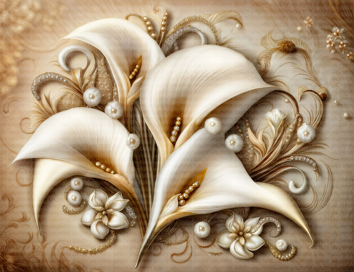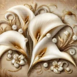 Bu büyüleyici tasarım, incilerin eşsiz zarafetini ve çiçeklerin doğal güzelliğini bir araya getiriyor. Krem ve beyaz tonlarındaki çiçekler, incilerle süslenerek mekana sofistike ve göz alıcı bir hava katıyor. Altın ve sedef ışıltıları, tasarıma lüks ve zengin bir dokunuş katıyor. Bu özel tasarım, izleyicisine zarafet, lüks ve romantizm hissini aynı anda yaşatıyor.