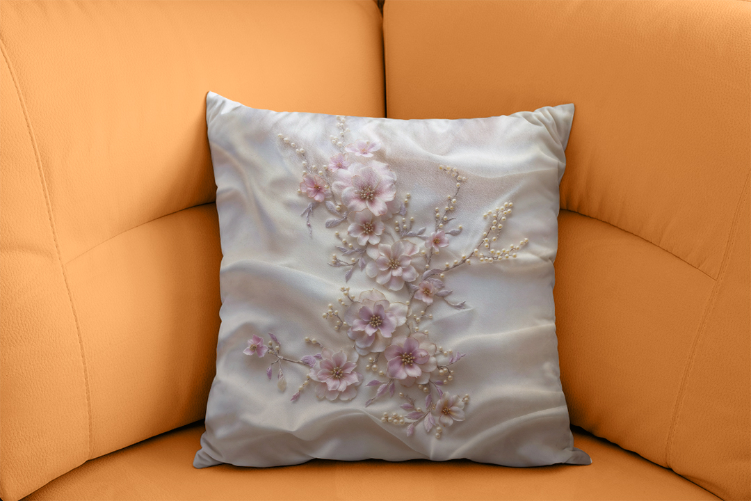 Be the first to review “İncinin Zarafetiyle Taçlanan İpeksi Çiçek Buketi Kırlent”