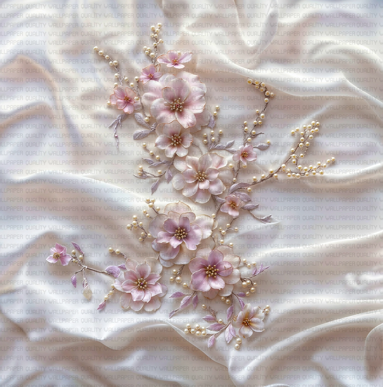 Bu zarif sanat eseri, ipeksi dokusu ve inci detaylarıyla göz kamaştıran bir çiçek buketini sunuyor. Her bir çiçek, incilerin zarafetiyle süslenerek tasarıma benzersiz bir ışıltı katıyor. Bu eser, mekanlara romantik bir hava ve sofistike bir dokunuş getirirken, ipeğin yumuşaklığını ve incinin asaletini bir araya getiriyor.