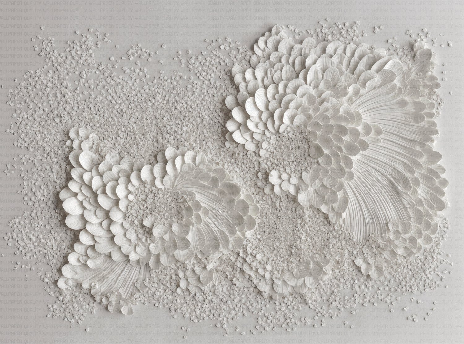 Bu eşsiz tasarım, beyaz kağıdın ustaca işlenmesiyle hayat bulan kabartma çiçeklerden oluşuyor. Her bir yaprak ve taç yaprağı, ışık ve gölgeyle dans ederek büyüleyici bir derinlik ve dokunsallık yaratıyor. Bu çalışma, sadeliğin ve zarafetin gücünü vurgulayarak izleyicisine huzurlu ve etkileyici bir deneyim sunuyor.