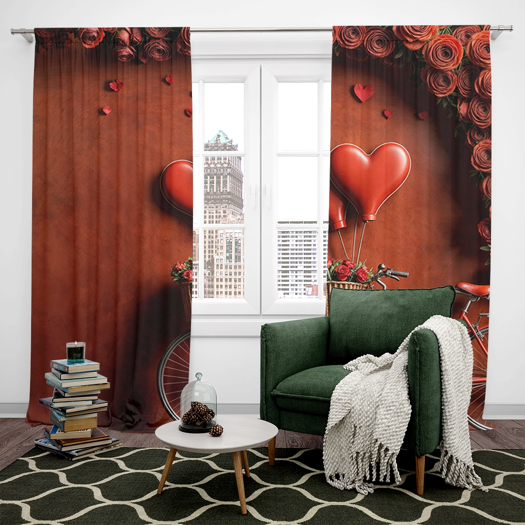 Be the first to review “Kalp Balonlarının ve Romantik Bisikletin Sanatsal Yansıması Fon Perde”