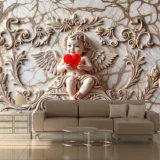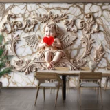 Bu tasarım, aşkın ilahi ve masum yüzünü, zarif bir melek kabartmasıyla gözler önüne seriyor. Merkezdeki uyuyan melek figürü, kollarında parlak kırmızı, damarlı bir kalp tutarak, sevginin kutsallığını ve evrenselliğini simgeliyor. Meleğin çevresini saran kıvrımlı altın rengi oymalar ve mermer dokulu fon, esere zenginlik ve ihtişam katarken, genel kompozisyon izleyicide hem huzur hem de derin bir romantizm hissi uyandırıyor. Her bir fırça darbesi, mermerin soğuk zarafetini, altının sıcak ışıltısını ve kalbin canlı kırmızısını hissettirirken, renklerin uyumu izleyicide hem hayranlık hem de derin bir romantizm hissi uyandırır. Bu eser, bakan herkese sevginin ve güzelliğin gücünü hatırlatacak, mekanlara asalet ve zamansız bir estetik katacak, adeta bir sanat galerisinden fırlamış gibi büyülü bir his bırakacaktır.
