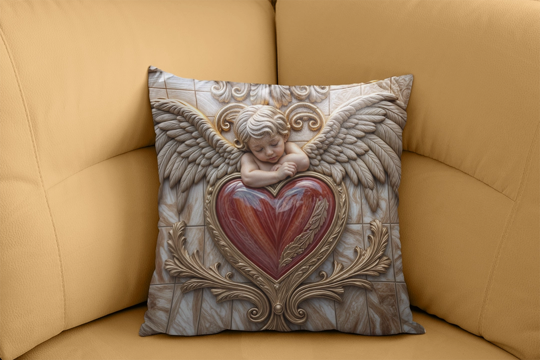Bu tasarım, aşkın ilahi ve masum yüzünü, zarif bir melek kabartmasıyla gözler önüne seriyor. Merkezdeki uyuyan melek figürü, kollarında parlak kırmızı, damarlı bir kalp tutarak, sevginin kutsallığını ve evrenselliğini simgeliyor. Meleğin çevresini saran kıvrımlı altın rengi oymalar ve mermer dokulu fon, esere zenginlik ve ihtişam katarken, genel kompozisyon izleyicide hem huzur hem de derin bir romantizm hissi uyandırıyor. Her bir fırça darbesi, mermerin soğuk zarafetini, altının sıcak ışıltısını ve kalbin canlı kırmızısını hissettirirken, renklerin uyumu izleyicide hem hayranlık hem de derin bir romantizm hissi uyandırır. Bu eser, bakan herkese sevginin ve güzelliğin gücünü hatırlatacak, mekanlara asalet ve zamansız bir estetik katacak, adeta bir sanat galerisinden fırlamış gibi büyülü bir his bırakacaktır.