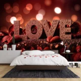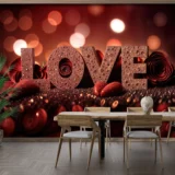 Bu tasarım, aşkın en yoğun ve en tutkulu halini, adeta bir duygu patlaması gibi gözler önüne seriyor. Derin, ışıltılı bir zemin üzerinde yükselen, kırmızı güllerle bezenmiş “LOVE” yazısı, sevginin gücünü ve derinliğini simgeliyor. Harflerin etrafını saran parlak kırmızı ve bordo tonlarındaki güller, tutkunun ve arzunun yoğunluğunu ifade ederken, yere serpilmiş minik kalp şeklindeki detaylar ve ışıltılar, romantizmin her köşeye yayıldığını fısıldıyor. Arka plandaki yumuşak bokeh efektli ışıklar, bu özel anın büyülü atmosferini tamamlıyor. Her bir fırça darbesi, bu özel anın heyecanını, renklerin dansı ise tutkuyu ve sonsuz sevgiyi yansıtıyor. Bu eser, izleyicide hem hayranlık hem de derin bir romantizm hissi uyandırır. Sevgililer Günü, evlilik teklifi, düğün veya özel yıldönümleri gibi unutulmaz anları ölümsüzleştirmek için tasarlanmıştır.