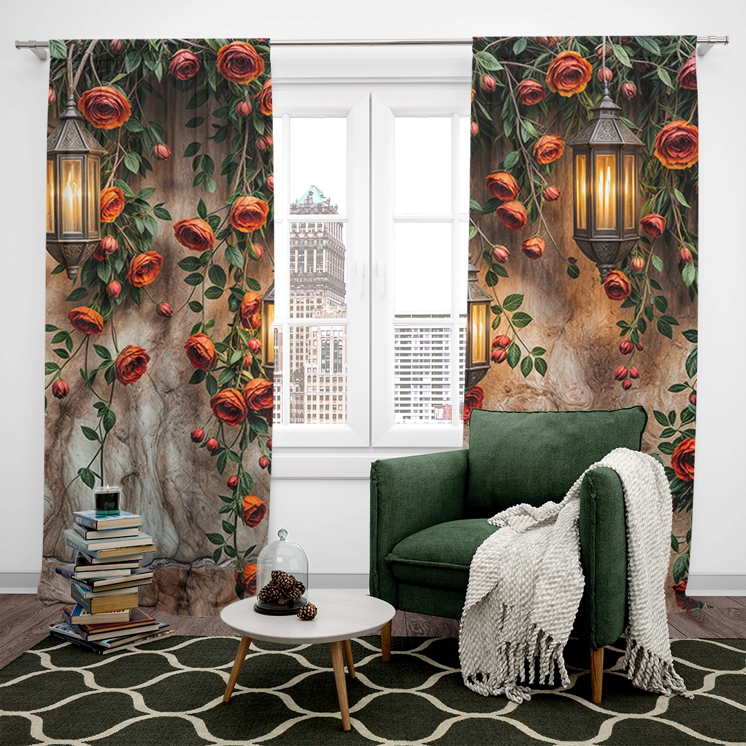 Be the first to review “Kırmızı Güller Kuşburnu Detayları ve Antik Fenerlerin Büyülü Işıltısı Fon Perde”