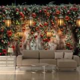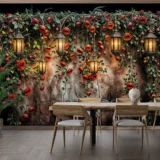 Bu tasarım, zamanın durduğu, gizemli ve romantik bir bahçenin derinliklerine davet ediyor. Eski, dokulu bir duvarın üzerinde yükselen, canlı kırmızı güller ve kuşburnu meyveleriyle bezeli yemyeşil sarmaşıklar, doğanın zarafetini ve tutkunun canlılığını simgeliyor. Aralarına serpiştirilmiş antik fenerler, sıcak ve davetkar bir ışık yayarak, bu büyülü anın atmosferini tamamlıyor. Her bir fırça darbesi, duvarın dokusunu, yaprakların narinliğini ve ışığın yumuşaklığını hissettirirken, renklerin uyumu izleyicide hem huzur hem de derin bir romantizm hissi uyandırır. Bu eser, bakan herkese kendi özel anlarını hatırlatacak, mekanlara sıcaklık, gizem ve zamansız bir güzellik katacak, adeta bir rüyadan fırlamış gibi büyülü bir his bırakacaktır.