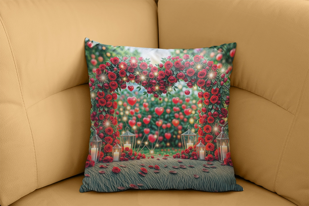 Bu tasarım, aşkın ve romantizmin en büyüleyici halini, adeta bir peri masalından fırlamış gibi gözler önüne seriyor. Yemyeşil ağaçların ve çalıların arasında yükselen, binlerce taze kırmızı gülden oluşmuş kalp şeklinde bir kemer, sevginin sonsuzluğunu ve tutkunun derinliğini simgeliyor. Kemerin etrafına serpiştirilmiş sıcak sarı ışıklar ve havada süzülen küçük kırmızı kalpler, büyülü bir atmosfer yaratırken, yere serpilmiş gül yaprakları ve zarif fenerler, her bir anın özel olduğunu fısıldıyor. Bu eser, izleyicide derin bir huzur, tarifsiz bir romantizm ve unutulmaz anlara duyulan özlem hissi uyandırır. Evlilik teklifi, düğün, nişan veya özel yıldönümleri gibi hayatın en değerli anlarını ölümsüzleştirmek için tasarlanmıştır. Her bakışta aşkın büyüsünü hatırlatan, mekanlara sıcaklık ve zarafet katan, adeta bir rüyadan fırlamış gibi büyülü bir his bırakacaktır.