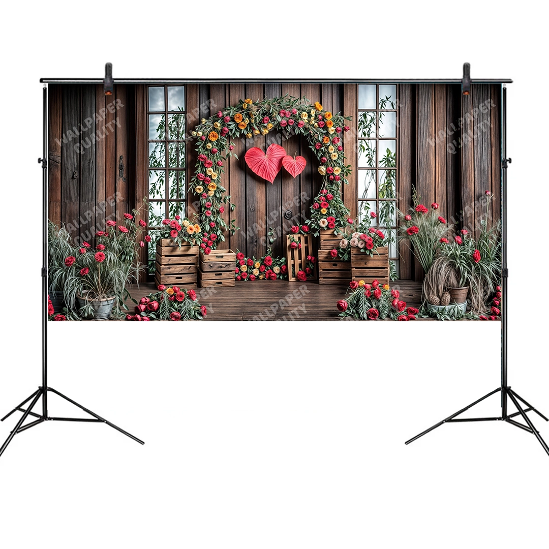 Bu tasarım, doğanın sıcaklığı ile aşkın samimiyetini büyüleyici bir şekilde bir araya getiriyor. Rustik ahşap bir kulübenin önünde yükselen, kırmızı ve turuncu tonlarındaki güllerle özenle bezenmiş kalp şeklinde bir kemer, sevginin doğal ve köklü bir ifadesi. Kemerin ortasında asılı duran iki büyük kırmızı kalp, tutkunun ve bağlılığın gücünü vurgularken, etrafındaki ahşap kasalar ve saksılardaki yemyeşil bitkiler ve taze çiçekler, yaşamın canlılığını ve tazeliğini fısıldıyor. Her bir fırça darbesi, bu özel anın huzurunu ve neşesini yansıtırken, renklerin uyumu izleyicide hem sıcaklık hem de romantizm hissi uyandırır. Bu eser, bakan herkese özel anlarını hatırlatacak, mekanlara samimiyet ve zarafet katacak, adeta bir rüyadan fırlamış gibi büyülü bir his bırakacaktır.