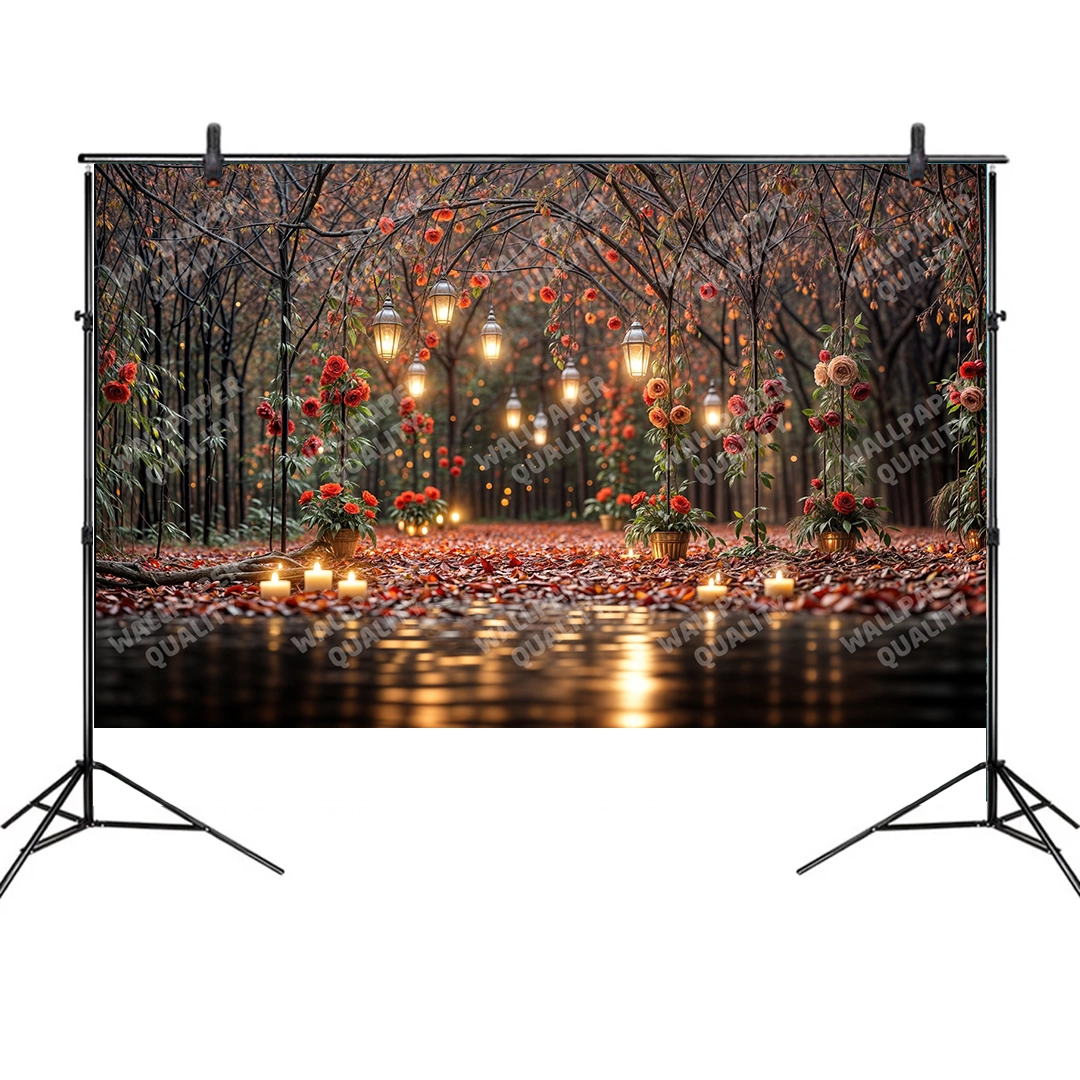 Bu tasarım, sonbaharın romantik ve gizemli atmosferini, büyüleyici bir ışık oyunlarıyla birleştiriyor. Kırmızı ve turuncu tonlarındaki yapraklarla kaplı bir orman patikası, izleyiciyi adeta bir rüyaya davet ediyor. Ağaç dallarından sarkan antik fenerler, sıcak ve davetkar bir ışık yayarak, bu büyülü anın atmosferini tamamlıyor. Yere serpilmiş mumlar ve zarif gül aranjmanları, romantizmin ve huzurun her köşeye yayıldığını fısıldıyor. Her bir fırça darbesi, yaprakların hışırtısını, ışığın yumuşaklığını ve bu özel anın dinginliğini hissettirirken, renklerin uyumu izleyicide hem sıcaklık hem de derin bir romantizm hissi uyandırır. Bu eser, bakan herkese kendi özel anlarını hatırlatacak, mekanlara sıcaklık, gizem ve zamansız bir güzellik katacak, adeta bir rüyadan fırlamış gibi büyülü bir his bırakacaktır.