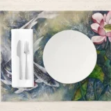 Bu tasarım, doğanın en güzel unsurlarını bir araya getiriyor. Koi balıklarının zarif hareketleri, lotus çiçeğinin büyüleyici güzelliğiyle buluşuyor. Renklerin canlılığı ve suyun dinginliği, izleyicilere huzurlu bir atmosfer sunuyor. Bu eser, doğanın senfonisini evinize taşıyarak size ilham verici bir deneyim yaşatıyor.