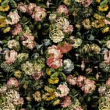 Bu tasarım, gizemli bir bahçenin derinliklerinde saklı olan zarif çiçekleri yansıtıyor. Koyu renklerin hakimiyeti ve çiçeklerin detaylı dokusu, sofistike ve etkileyici bir atmosfer yaratıyor. Bu eser, izleyiciye gizem, zarafet ve derinlik hissi veriyor. Fırça darbeleri ve renklerin kullanımı, bu etkileyici ve çarpıcı etkiyi güçlendiriyor.