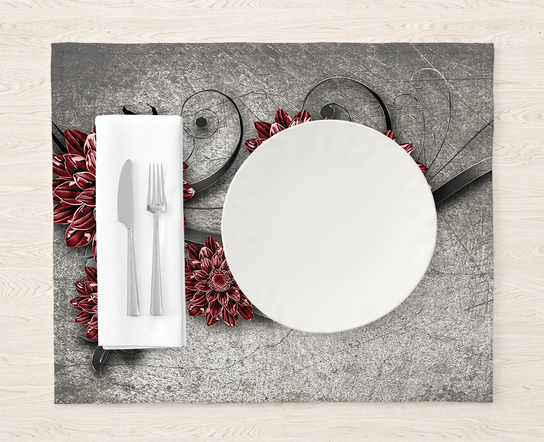 Bu tasarım, koyu tonların gizemli atmosferini ve çiçeklerin büyüleyici güzelliğini bir araya getiriyor. Derin renkler, tasarıma dramatik bir hava katarken, çiçeklerin zarif kıvrımları ise büyüleyici bir kontrast oluşturuyor. Bu eser, mekanlara sofistike bir şıklık ve gizemli bir cazibe katıyor.