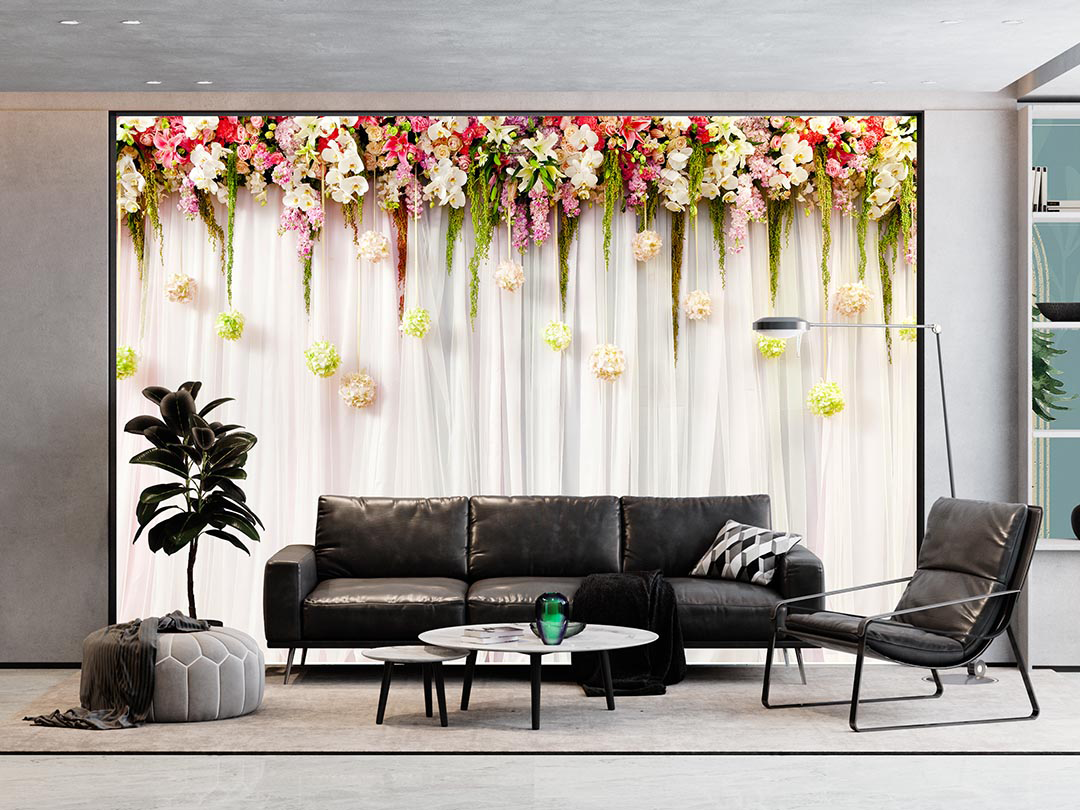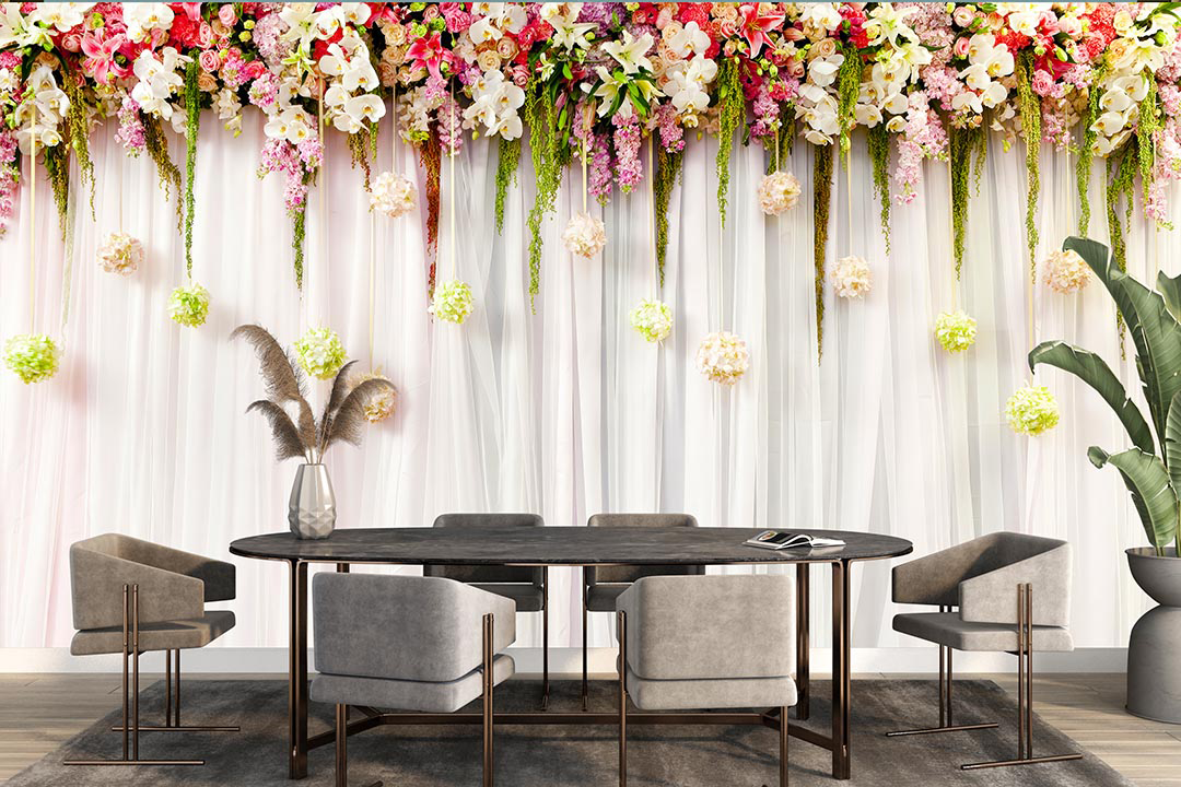 Bu görsel, baharın canlılığını ve coşkusunu yansıtan rengarenk çiçeklerle dolu bir kompozisyon sunuyor. Pembe, beyaz ve diğer canlı renklerin bir araya geldiği bu tasarım, neşe ve enerji dolu bir atmosfer yaratıyor. Özellikle bahar temalı etkinlikler, düğünler veya kutlamalar için ideal olan bu ürün, mekanlara canlılık ve tazelik katıyor.