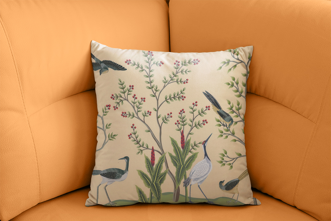• Kırlent: Kanepe veya yatak üzerinde kullanılarak dekorasyona doğal bir zarafet ve konfor katar. Kuş ve çiçek desenleri, mekana rahatlatıcı bir hava sağlar.
