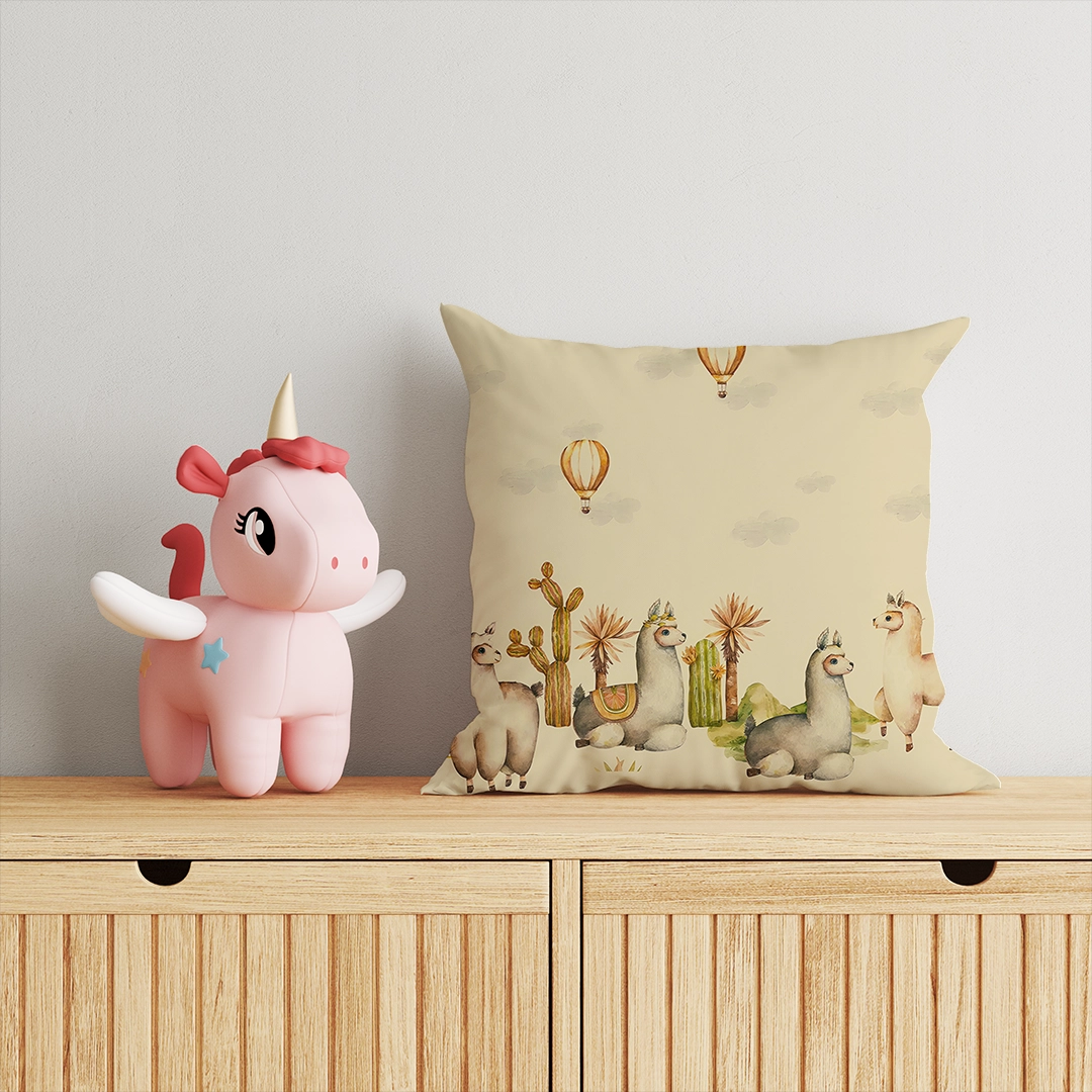 Be the first to review “Lamaların ve Sıcak Hava Balonlarının Neşeli Yolculuğu Pastel Tonlarda Bir Rüya Kırlent”